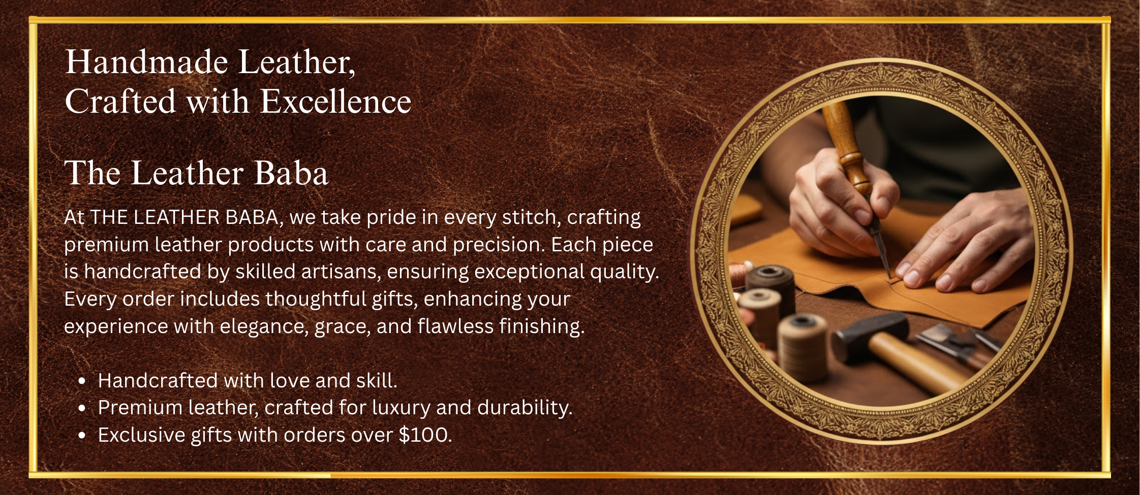 Leather has always been a material of character — shaped by time, texture, and touch. Our handmade leather pieces are created using carefully selected hides, worked by skilled artisans who respect traditional techniques and modern quality standards. Every stitch, cut, and finish is done by hand, ensuring durability, comfort, and a natural patina that only improves with age.